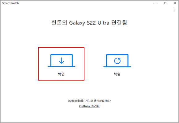 1. 스마트 스위치 실행 후 휴대폰을 연결하고 백업을 누르세요.