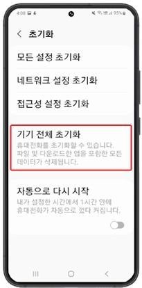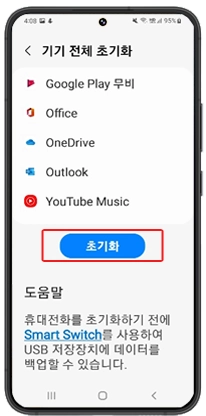 ※ 휴대전화에 삼성 계정이 로그인된 경우 삼성 계정의 비밀번호를 입력 해야 초기화가 진행됩니다.
