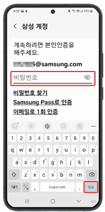 ⑥ 삼성 계정 비밀번호 입력 후 완료