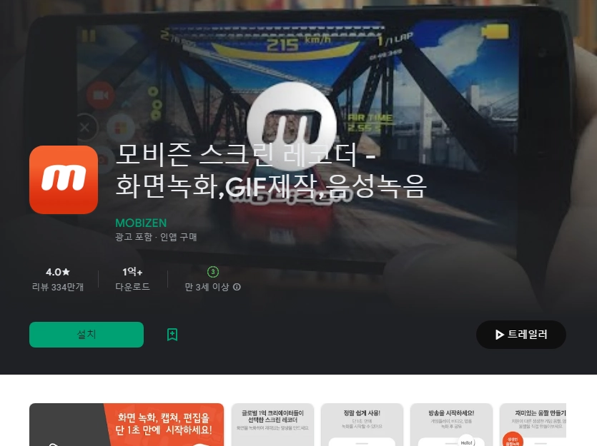 1) 모비즌 스크린 레코더 - 화면녹화,GIF제작,음성녹음 어플 소개