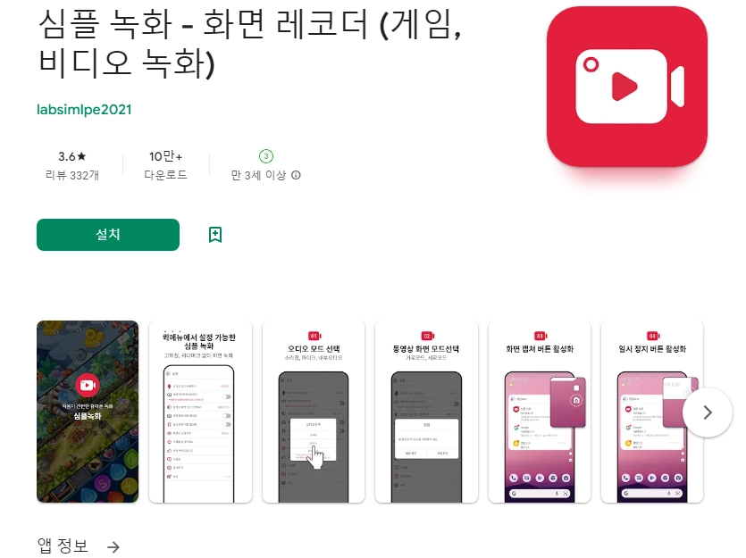 아래는 심플 녹화 - 화면 레코더 (게임, 비디오 녹화) 어플에 대한 스크린샷 정보입니다.