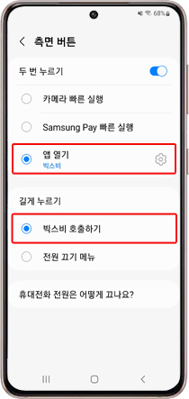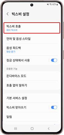 빅스비 호출 기능을 활성화하면 버튼을 누르지 않고도 빅스비를 호출할 수 있습니다.