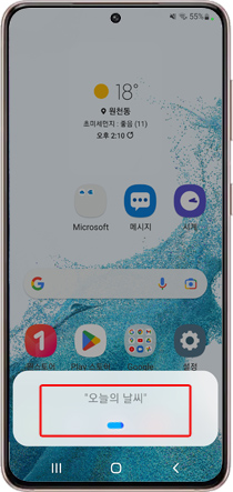 예를 들어, 측면 버튼을 누른 채 “오늘 날씨 어때?”라고 말하면 날씨 정보가 나타납니다. 내일 날씨도 알고 싶다면 다시 측면 버튼을 누른 채 “내일은?” 이라고 말하면 빅스비가 대화의 맥락을 이해해 내일 날씨 정보를 알아서 보여줍니다.