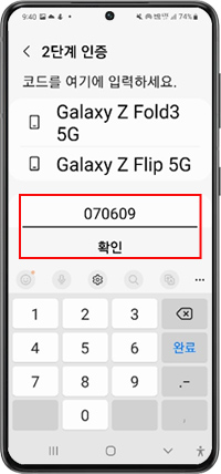 ⑥ 2단계 인증 코드입력→ 확인