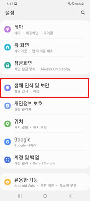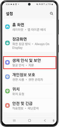 ① 설정 > 생체 인식 및 보안