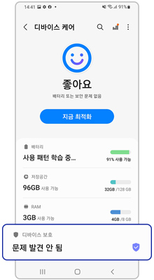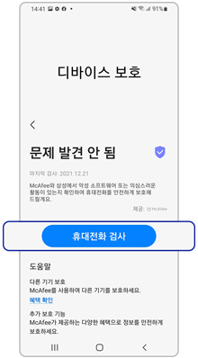 디바이스 보호 기능을 통해 기기를 악성코드로부터 보호하세요.