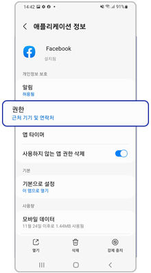 앱 설치 후 실행 시 권한을 설정할 수 있습니다.