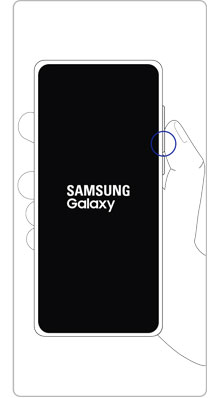 Step 4. 삼성 로고가 화면에 나오면 음량 (하) 버튼을 누른 채, 측면 버튼에서 손을 뗍니다.