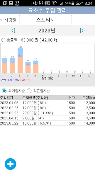 아래는 차량관리 차계부 어플에 대한 스크린샷 정보입니다.