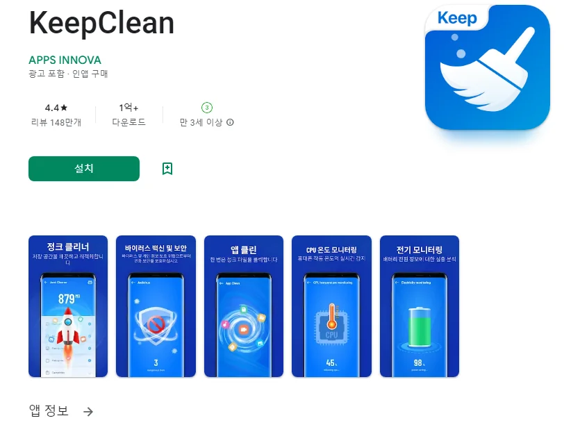 KeepClean 어플에 대한 스크린샷 정보가 필요하시다면 아래 이미지를 참고하시기 바랍니다.