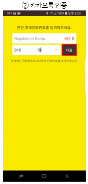 1) 전화번호 인증 후 카카오계정에 로그인합니다.