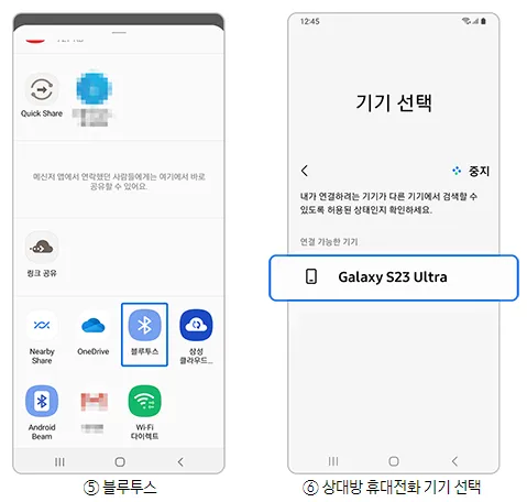 갤러리앱에서사진공유를선택하여블루투스휴대전화로전송할수있습니다.