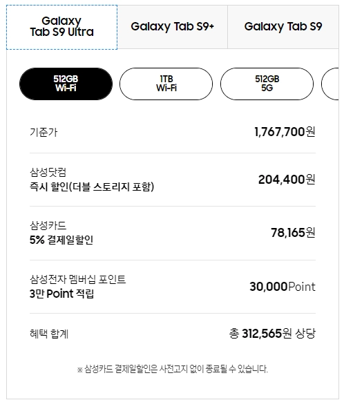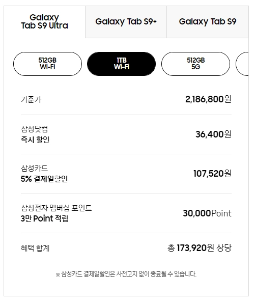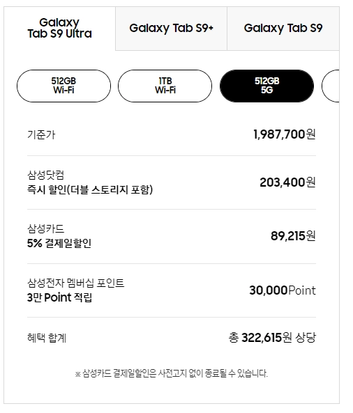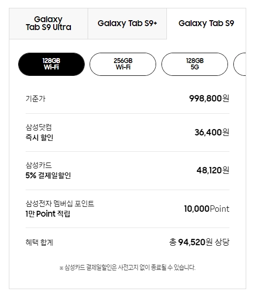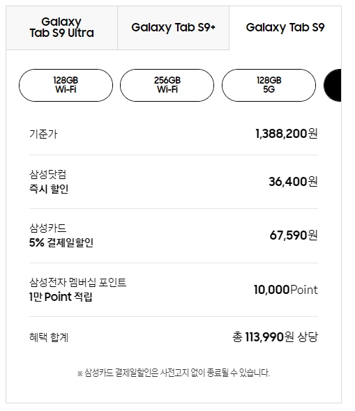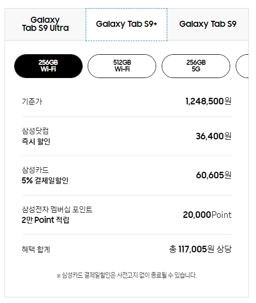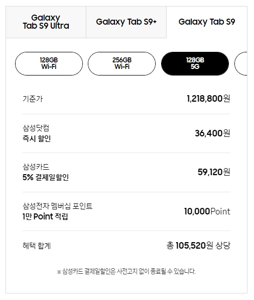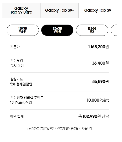1) 갤럭시탭 S9 가격