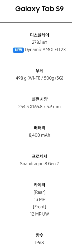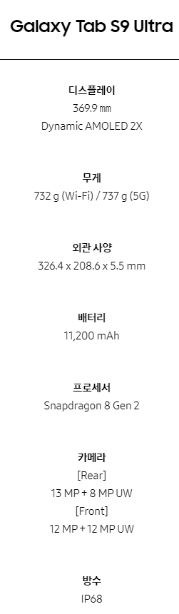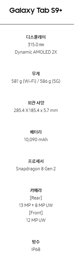 2. 갤럭시탭 S9 시리즈 스팩비교 (울트라,플러스)