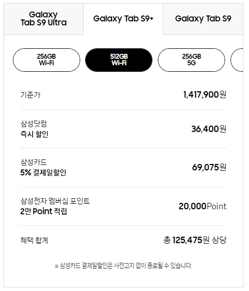 갤럭시탭 S9 플러스 512G 와이파이