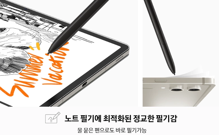 이번 시리즈는 갤럭시 탭 S 시리즈 최초로 IP68 등급의 방수방진 기능을 탑재하여 야외 사용성이 강화되었습니다. 또한, 비전 부스터(Vision booster) 기능을 통해 주변 조도에 따라 디스플레이의 밝기를 자동으로 조정하고 색상과 색 대비를 조절해 야외 시인성을 향상시켰습니다.