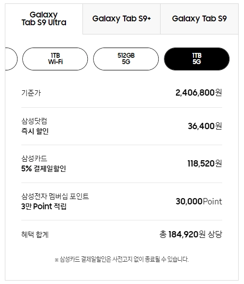 4. 갤럭시탭 S9 시리즈 출고가 사전예약 가격할인