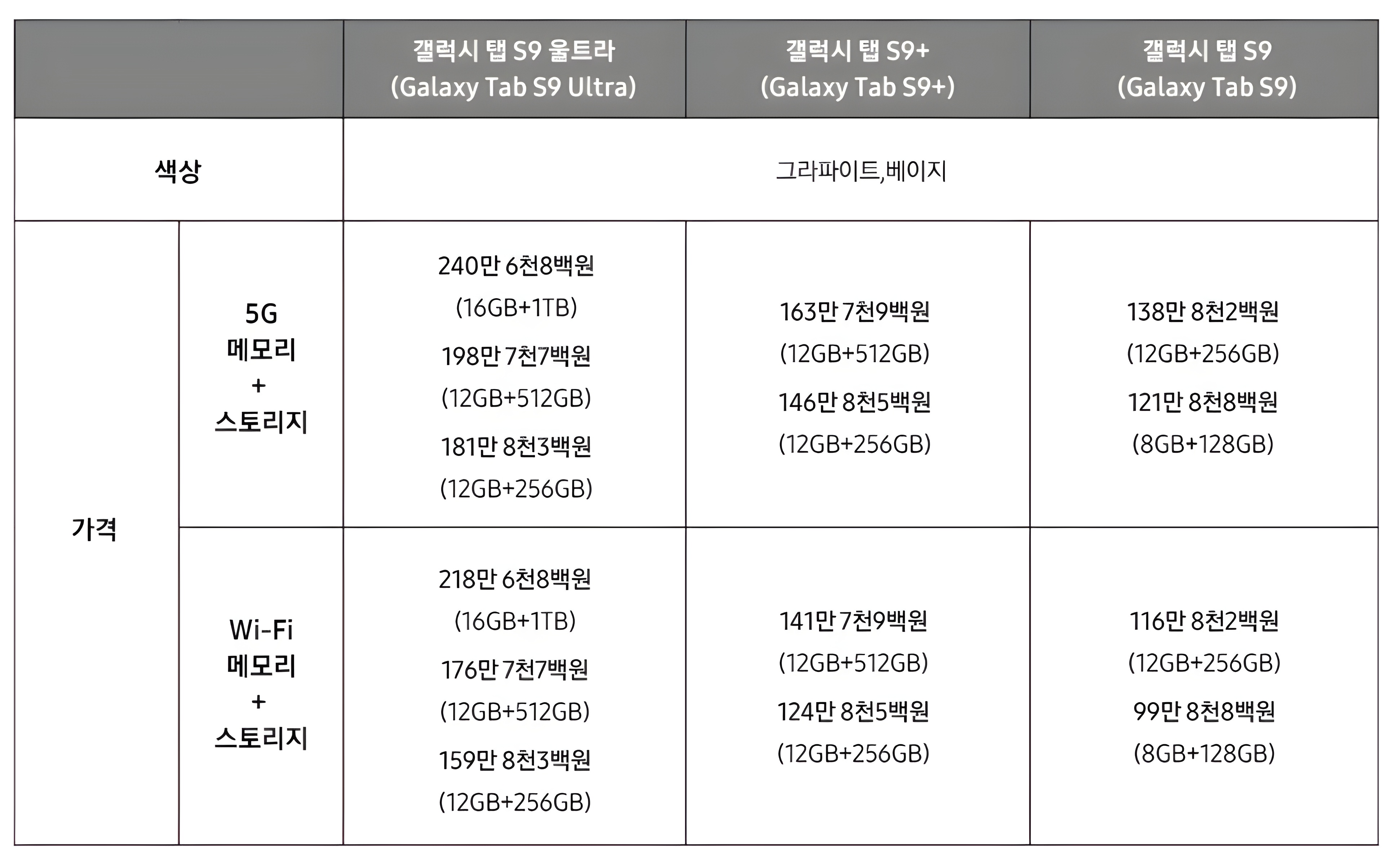 1. 갤럭시탭 S9 시리즈 디자인 및 특장점