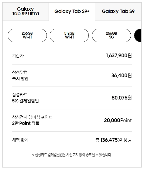 1) 갤럭시탭 S9 가격