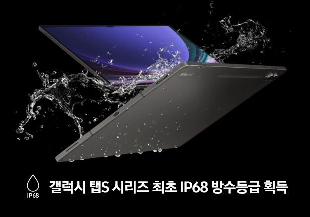이번 시리즈는 갤럭시 탭 S 시리즈 최초로 IP68 등급의 방수방진 기능을 탑재하여 야외 사용성이 강화되었습니다. 또한, 비전 부스터(Vision booster) 기능을 통해 주변 조도에 따라 디스플레이의 밝기를 자동으로 조정하고 색상과 색 대비를 조절해 야외 시인성을 향상시켰습니다.