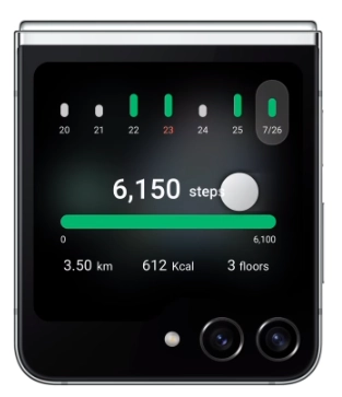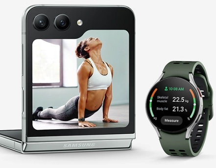 갤럭시 Z 플립5와 갤럭시 워치6 시리즈를 연결한 후 운동에 더욱 몰입해 보세요.