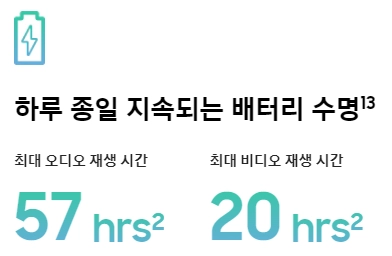 eSIM 연계 듀얼심 지원, IPX8 등급 방수 지원, Dolby Atmos 기술 탑재, FM 라디오 지원[A]