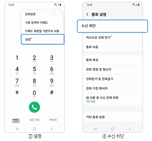1. 갤럭시 핸드폰 수신차단 설정하기