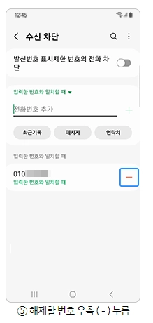 수신 차단 설정된 번호를 확인 및 해제하는 방법은 아래와 같습니다.
