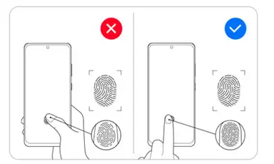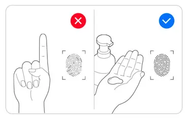 • 손가락과 화면 중앙 하단에 위치한 지문 센서 영역이 깨끗하고 물기가 없는지 확인합니다.