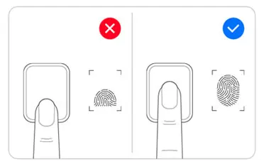 손가락 부상 등으로 지문이 손상될 경우를 대비하여 예방책으로 여러 개의 지문을 등록할 것을 권장합니다. 최대 4개의 다른 지문을 추가할 수 있습니다.