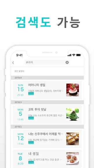▶ 기능이 마음에 들어요 다만 검색 기능에서 그날의 일기 첫줄이 나오는게 아니라 해당일기의 검색한 부분이 나올 수 있다면 완벽할 것 같아요.