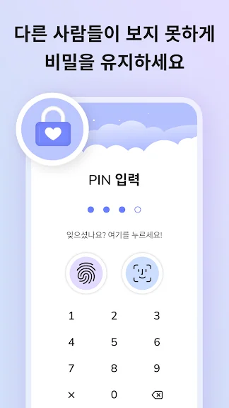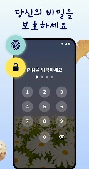 암호로 앱에 잠금을 설정할 수 있어서 다른 사람이 내 일기장을 볼 수 없도록 단단히 자물쇠를 걸어 놓을 수 있습니다.