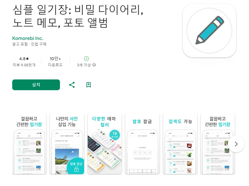 4. 심플 일기장: 비밀 다이어리, 노트 메모, 포토 앨범 어플 소개