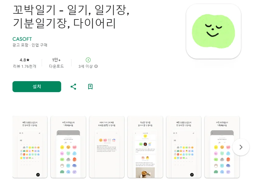아래는 꼬박일기 - 일기, 일기장, 기분일기장, 다이어리 어플에 대한 스크린샷 정보입니다.