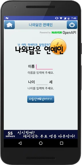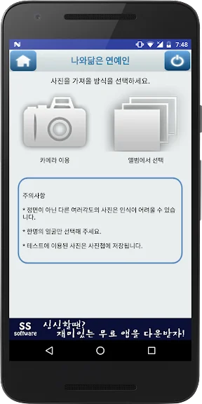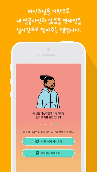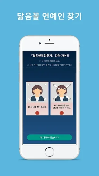 나와 닮은 연예인 어플에 대한 스크린샷 정보가 필요하시다면 아래 이미지를 참고하시기 바랍니다.