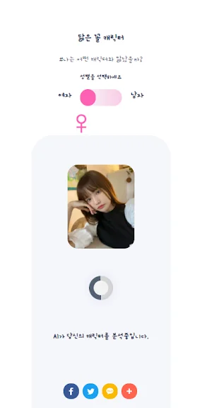 닮은꼴 캐릭터 어플에 대한 스크린샷 정보가 필요하시다면 아래 이미지를 참고하시기 바랍니다.